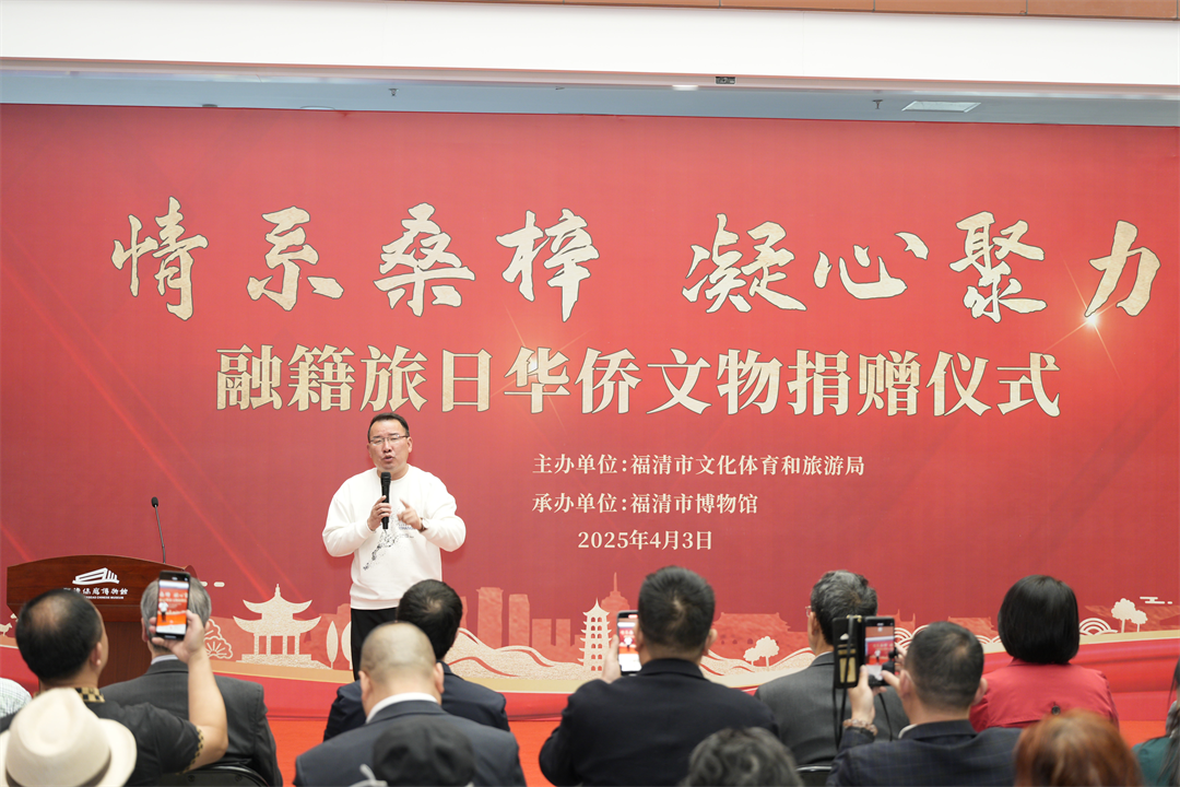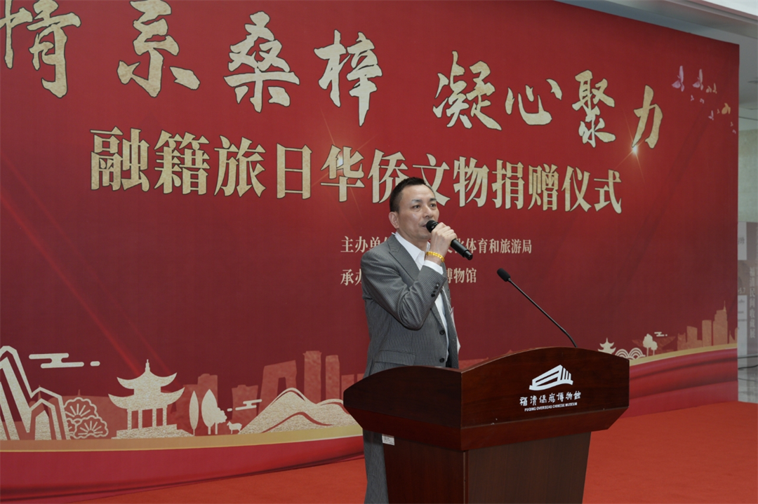 借此大会契机,我馆举行了融籍旅日华侨黄国梁、王明凤伉俪文物捐赠仪式。福清市文化体育和旅游局党组书记杨锦嵩局长,福清市委统战部四级调研员张秀霞主任,福清市博物馆毛胤云馆长,日本福建经济文化促进会吴启龙会长,融籍日本神户侨领王锐辉、李琛,融籍日本名古屋侨领魏成炳以及黄国梁先生及其夫人王明凤女士等近百位华侨出席本次捐赠仪式。仪式由福清市博物馆毛胤云馆长主持。