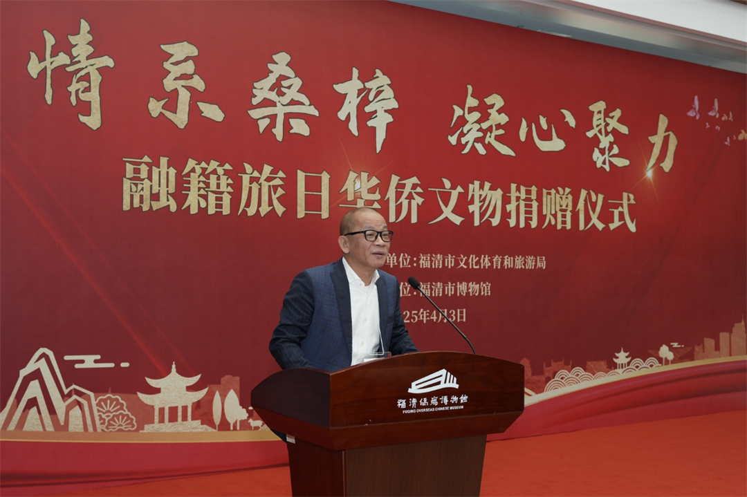 日本福建经济文化促进会吴启龙会长上台发言,呼吁更多的华侨学习黄国梁先生的精神,为博物馆提供更多有意义的藏品。