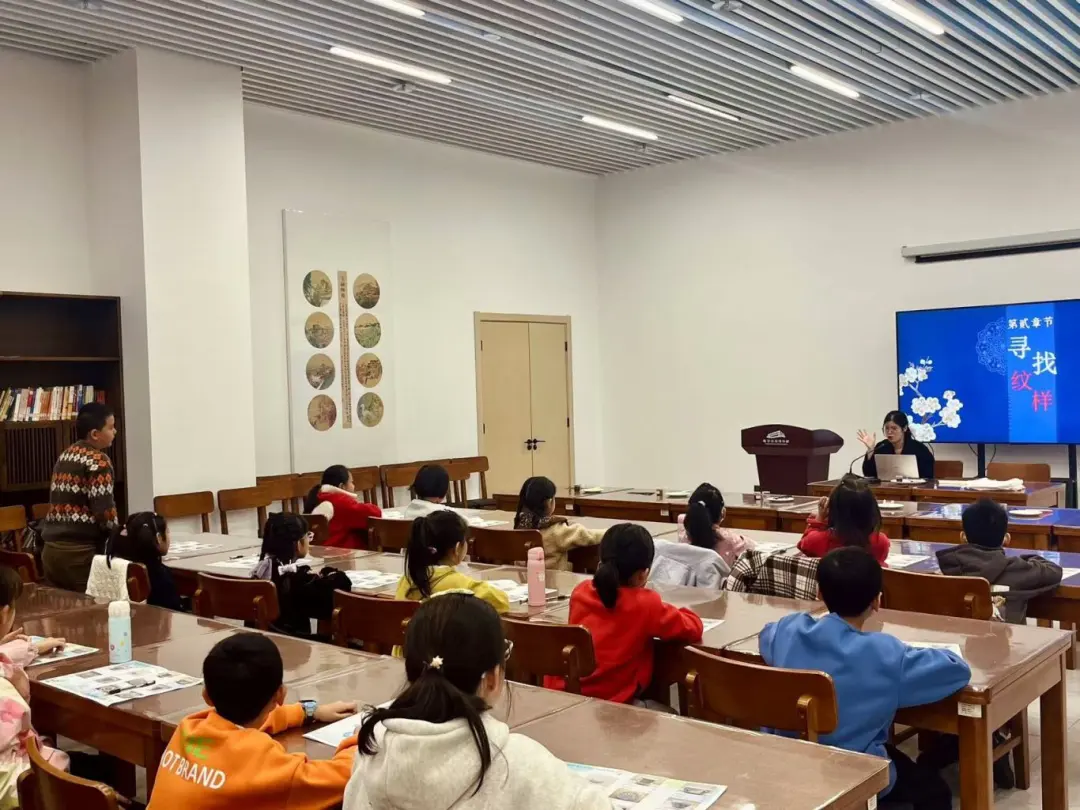 首先,由社教老师为现场的同学们讲解介绍中华传统纹样,展示瓷器中纹样的常见类型,帮助同学们了解中国传统纹样。