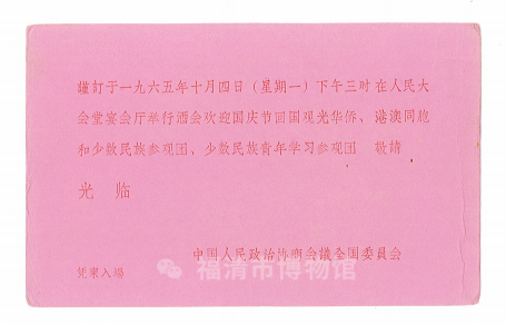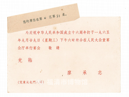 福建省华侨事务委员会等联合发出的宴会请柬(9月3日)