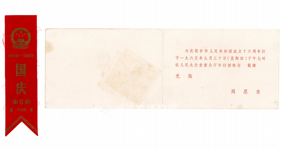 1965年9月30日庆祝中华人民共和国成立十六周年的招待会请柬和胸带