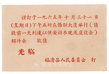 1965年10月31日福清县人民委员会发出的招待会请柬
