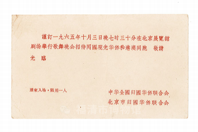 1965年10月3日中华全国归国华侨联合会等联合发出的歌舞晚会请柬