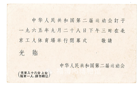 1965年9月28日中华人民共和国第二届运动会的闭幕式请柬